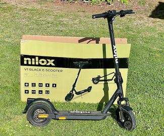Conforme alla nuova normativa stradale, Nilox V1 ha la doppia leva freno, frecce anteriori e posteriori e porta-targa. Motore da 350 W, dotato di 3 velocità selezionabili (6 km/h - 20 km/h - 25 km/h) e batteria da 36 V - 7.5 Ah, ricaricabile in 5 h, che permette fino a 30 km di autonomia con una carica. Ruote pneumatiche da 10”, con battistrada stradale, e le sospensioni anteriori. Il telaio in acciaio e manubrio in alluminio lo rendono dona leggere e maneggevole. Doppio sistema frenante (elettrico anteriore e a disco posteriore) Con scatola e cavo di ricarica e ancora in garanzia fino a ottbre 2027 , ritiro a mano in zona MN VR MO