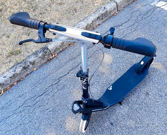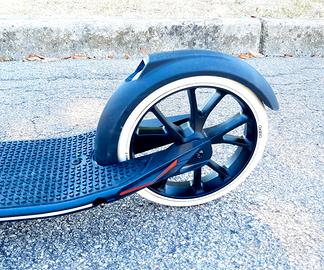 Vendo per inutilizzo monopattino Oxelo C 900. Utilizzato solo per 2 settimane nel periodo estivo ed in ottime condizioni generali. Ripieghevole e facilmente trasportabile grazie alla modalità “trolley” (piegato il monopattino si traina come una valigia) pesa solo 6.8kg Equipaggiato con grandi ruote da 200mm in gomma PU tenera (75A) ad alto rimbalzo e cuscinetti ABEC 7 ha un ottima qualità di pattinata facilitando la spinta e limitando la fatica. Per massimizzare il comfort d’uso è dotato di una sospensione anteriore che riduce ampiamente i disagi prodotti da una strada dissestata o dai passaggi sui marciapiedi. E’ inoltre dotato di campanello e freno anteriore con leva sul manubrio, freno posteriore a pressione sul copriruota, parafango anteriore e posteriore. Conforme ai requisiti della vigente normativa europea EN14619 in materia di sport monopattino. Adatto per adulti e ragazzi di altezza compresa fra 145 e 195cm, grazie alla regolazione del manubrio, e di peso non superiore ai 100kg. COMPOSIZIONE: struttura 80% alluminio 6061, 15% acciaio, 5% polietilene (PE). Ruote dei roller 55% polipropilene (PP), 45% poliuretano (PU) Mail per contatto diretto: natalya2006@libero.it P.S.: Ritiro solo a mano. Prezzo: 110,00 euro non trattabile.