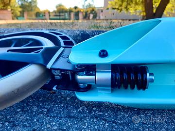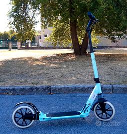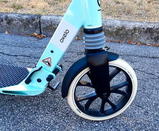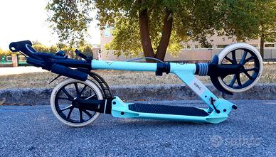 Vendo per inutilizzo monopattino Oxelo Town 7XL. Utilizzato solo per 2 settimane nel periodo estivo ed in ottime condizioni generali. Ripieghevole e facilmente trasportabile pesa solo 5.6kg. Equipaggiato con grandi ruote da 200mm in gomma PU tenera (75A) ad alto rimbalzo e cuscinetti ABEC 5 ha un ottima qualità di pattinata facilitando la spinta e limitando la fatica. Per massimizzare il comfort d’uso è dotato di due sospensioni (una davanti ed una dietro) che riducono ampiamente i disagi prodotti da una strada dissestata o dai passaggi sui marciapiedi. E’ inoltre dotato di campanello e freno anteriore con leva sul manubrio, freno posteriore a pressione sul copriruota, parafango anteriore e posteriore. Conforme ai requisiti della vigente normativa europea EN14619 in materia di sport monopattino. Adatto per adulti e ragazzi di altezza compresa fra 145 e 195cm, grazie alla regolazione del manubrio, e di peso non superiore ai 100kg. COMPOSIZIONE: struttura 80% alluminio 6061, 15% acciaio, 5% polietilene (PE). Ruote dei roller 55% polipropilene (PP), 45% poliuretano (PU) Mail per contatto diretto: natalya2006@libero.it P.S.: Ritiro solo a mano. Prezzo: 90,00 euro non trattabili.