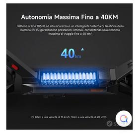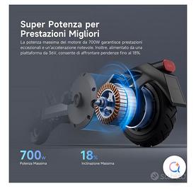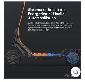 Monopattino professionale XL, ancora nella confezione pagato 749€ Dimensioni H1129xL1119xA610 mm Pieghevole, peso 22kg Portata massimo XXL 130kg Adatto a strade asfaltate e dissestate Display 4pollici ancora con pellicola Pneumatici anteriore e posteriore 10pollici Recupero di Energia Sistema di frenatura Triplo E-ABS Autonomia massima fino a 40km Luci di segnalazione integrati Luce a led automatica 3 modalità di velocità Walking-Dinamic-Sport Bluetooth App Sospensioni in acciaio ShockMaster Motore Potente 700W a 36V 7.65Ah Caricabatterie Sistema Locale with Apple con tracciamento Lo scooter ha Massime Prestazioni, Perfetto in tutto vendo a 499€. Qualsiasi prova. no perditempo