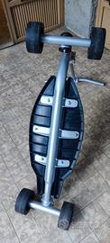 monopattino con pedana larga e 4 ruote, assi snodati, ruote con cuscinetti. altezza manubrio regolabile ( 70cm Min - 87cm Max), asta del manubrio pieghevole per facilitarne il trasporto. Per ulteriori info sono a disposizione.