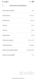 Vendo monopattino elettrico Xiaomi perfettamente funzionante, ideale per spostamenti in città. Caratteristiche principali: •Chilometraggio totale: 294,84 km (poco utilizzato) •Autonomia residua stimata: circa 42,75 km •Batteria al 95% •Capacità batteria: 11813 mAh •Tensione: 40,45 V •Stato batteria: Normale •Temperatura batteria: 13°C •Firmware BMS: V1.4.1 •Data produzione: 15/08/2020 Condizioni: •Usato ma in ottime condizioni •Nessun problema tecnico •Sempre mantenuto con cura Perfetto per chi cerca un mezzo pratico, economico