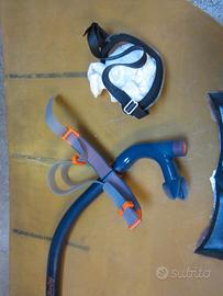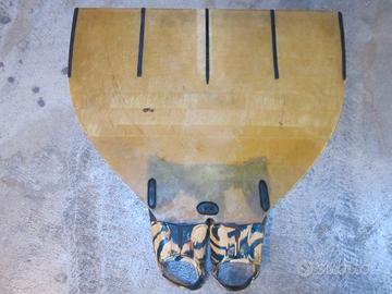 Vendo per inutilizzo set completo monopinna artigianale in vetroresina stratificata, usata in buone condizioni generali, maschera specifica per nuoto pinnato a basso volume adatta visi piccoli (donne, ragazzi) e tubo boccaglio frontale.