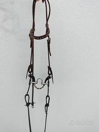 Vendo testiera usata poche volte, praticamente come nuova. Il cuoio è di ottima qualità. Il barbozzale con catena è stato aggiunto successivamente, per quello è arrugginito. Ha perso qualche perlina nel frontalino, ma eventualmente le rimetto su. Valuto anche la possibilità di vendere separatamente morso e testiera.