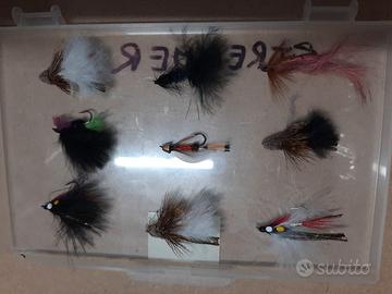 Vendo scatola di circa 35 mosche artificiali Streamer, nuove mai usate.Contatti tramite e-mail o WhatsApp 3272876382