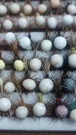 Vendo 135 mosche secche autocostruite su ami 12/14/16 con pallina di polistirolo per acque veloci o turbolente.