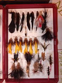 vendo piu o meno 180 mosche di mio nonno trovate in cantina. le mosche sono tutte fatte artigianalmente da lui e perfette penso mai usate. io non so il vero valore ma sono veramente pezzi di storia che il valore e più affettivo che altro. Vendo a 150€ te utto