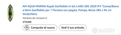Regalo canoa pagata 279 euro.
