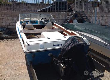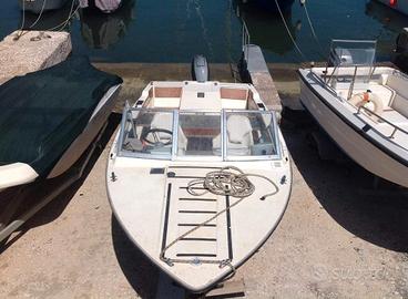 scafo molto stabile, montava un entrobordo da 200cv benzina, modifica con braket e monta un 737 evinrude 40cv. serbatoio 50l. con bocchetta rifornimento a prua.