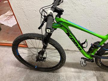 Mountain bike muscolare Kona telaio hei hei in fibra di carbonio ruote del 29, sellino telescopico, componentistica shimano deore xt. La bici ha cinque anni ma è stata usata pochissimo.