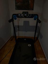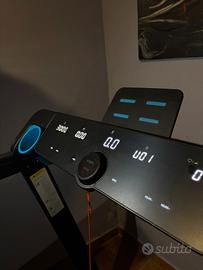 Questo tapis roulant compatto viene fornito con display con la visualizzazione dei parametri tempo, distanza, velocità, inclinazione, calorie, pulsazioni, pedometro e la consolle presenta comandi intuitivi, speaker bluetooth , usb per la ricarica di dispositivi, compatibile con ZWIFT e 2 portaborracce