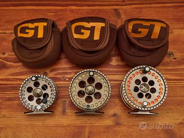 Vendo una serie di mulinelli per pesca a mosca, corredati dal fodero originale (se non diversamente specificato); le code montate sono in omaggio.
