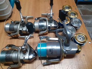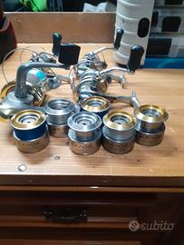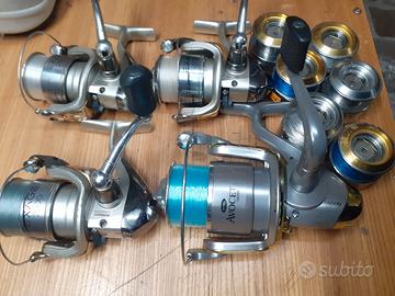 vendo in blocco mulinelli da pesca ,3 shimano 2500 con 6 bobine di ricambio, e avocet 6500
