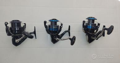 Tre splendidi mulinelli di cui due Shimano Nexave FI 5000 (mulinelli spinning versatili per pescatori che cercano prestazioni e durata , sia in acqua dolce che in mare) e un mulinello Daiwa CA 4012A taglia 4000 (caratteristiche di alto livello come gli ingranaggi Digigear e la bobina ABS abbinati a un look Total black, perfetto per lo spinning mediterraneo sia in mare che in acqua dolce) più un raffio telescopico della misura di 32cm chiuso 40cm aperto, comodo da portare nelle sezioni di pesca spinning sia nelle uscite in kayak che in scogliera e più un raffio con apertura a scatto automatico tramite pulsante 70cm chiuso e 111cm aperto , comodo da poter aprire con una mano e salpare il pesce da soli. Sia i mulinelli che i raffi sono in perfette condizioni, praticamente nuovi, usati pochissimo e tenuti in maniera maniacale. Vendo (per impossibilità di utilizzo) tutto il set a un prezzo affare. Tutti i mulinelli li do a 25€ l'uno più i due Raffi a 15 euro per un totale di 90 €, questi prezzi sono intesi solo per chi prende il set completo ,non faccio vendite singole ma solo l'intero set a 90€. Sia i mulinelli che i raffi costerebbero molto di più comprandoli singolarmente.