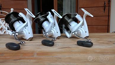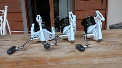 Vendo questi spettacolari mulinelli made in japan shimano super aero xt , del solo mercato giapponese, mulinelli molto rari da trovare, portati in carrozzeria a verniciare di bianco, dato che in origine sono grigi, rendendoli esteticamente fantastici, appena revisionati con ingrassaggio e pulizia, nascono appunto no drag, li ho già converti con apposito kit montato di pezzi nuovi, ovvero albero , vari supporti cicalino, bobine e tappi frizione, una fantastica conversione che permette di montare tutte le bobine di ultima generazione dall' aero technium mgs xsa, xsb, xsc, power aero, ultegra , Speed cast, speed master, ecc. Ecc... In aggiunta di tutti i suoi pezzi originali! No perditempo dato che ci sono più di 700 € tra pezzi , lavori e montaggi vari! Perfetti per carpfishing e surfcasting