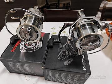 Coppia di mulinelli da surf casting, di importazione cinese molto robusto marca generica, corpo in alluminio taglia 14000, 6+1 cuscinetti rapporto 4.8:1 max drag 20 kg peso 575 gr , rigorosamente nuovi.