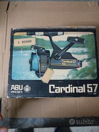 Vendo mulinello vintage Abu Cardinal 57 nero con scatola originale, 2 bobine,chiave per bulloni,fabbricato in Svezia.