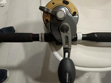 Canna colmic XT 6'6'' 20lbs che ha fatto la storia ed ancora oggi non c'è ne per nessuno!!! 20lbs di forza, leggerezza, sensibilità ed altissima qualità dei materiali.... Abbinata ad il miglior mulinello TYRNOS SHIMANO 30 lbs con frizioni disco che rende fluido il recupero, facile da regolare al bisogno. Chi ha un po' di esperienza, sa di cosa parlo. Lavora come una 15 lbs ma nel bisogno tollera grandi prede come Tonni o Cernie, e se capita la Regina sua maestà RICCIOLA MAX esprime tutto il suo equilibrio di questo combo canna mulinello nati per stare insieme!!! Pari al nuovo vendo con 700m di trecciato 0,14 multicolor 8x della AKAMI VORTRX nuovo. Nessun difetto.. Ma non avendo più la barca vendo, a chi spero le dia nuova vita he lei ricambiera' con grandi emozioni! Non presenta difetti, anche gli anelli non hanno segni di usura, tenuta in modo maniacale e uscita a mare poche volte, credo 3, ma subito lavata oliata e conservata..solo il mulinello costa € 350,00 FILO € 70,00 CANNA € 180,00 COLLEZIONE LIMITATA COME LA MIA € 600,00 vendo €300,00 un affare!! .