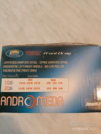 Mulinello da canna da pesca nuovo Andromeda 10 fd con bobina di ricambio ancora in scatola
