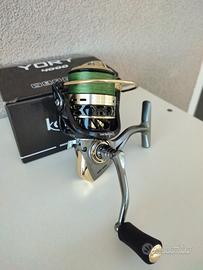 Mulinello da spinning Kolpo Yori 4000 nuovo mai utilizzato con trecciato dello 0,14.Bobina in allumino super light ed alleggerita, con banda ad alto grip concepita per evitare slittamenti dei fili trecciati quando sottoposti ad una trazione estrema. Il pignone in ottone tornito su unico blocco con controllo compiuterizzato garantisce una fluidità estrema e costante anche sotto sforzo. Archetto a sezione piena di diametro maggiorato, guidafilo anti twist roller. Il mulinello Kolpo Yory monta esclusivamente cuscinetti in acciaio trattati contro la corrosione. Manovella in metallo finemente tornita, a presa diretta dul corpo del mulinello per non disperdere potenza in fase di combattimento. Rotore di ultima generazione, Light Rotor, alleggerito e finemente rifinito. Manovella in eva ad alta densita ergonomica anti scivolo. Corpo molto rigido in grado di mantenere in asse perfetto tutti gli ingranaggi interni. Kolpo Yory, Fantastico mulinello di altissima gamma adatto alla pesca alla bolognese, spinning