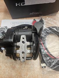 Fishing Ferrari KGN 500S Fishing Ferrari Mulinello Elettrico Kgn 500 S 6 Cuscinetti Scocca in alluminio anodizzato Bobina anodizzata in alluminio Cuscinetti in acciaio inox sigillati Frizione con 5 dischi in carbonio Regolatore di velocità Settaggio digitale della profondità Contametri digitale in metri Funzione jigging semiautomatica Programmazione specifiche filo Max Drag 15 kg recupero: gear ratio 3.5:1 180 mt/min Cuscinetti: 6 Peso: 785 gr Capacità: 4 PE-400 m – 5 PE/300 m – 6 PE/300 m (circa 400mt dyneema 0,30) Funzione anti surriscaldamento con blocco motore automatico Motore all’esterno della bobina per un miglior rilascio del filo Ottimo per bolentino max 300mt e pesca ai calamari sia in verticale che a traina. Nuovo venduto da negozio con 2Anni di garanzia accompagnato da scontrino fiscale o fattura.
