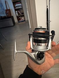 Mulinello Okuma Azores 5500 ideale per pesca in mare (spinning, shore jigging, vertical con jig o palluccella, drifting al tonno e spinning alle mangianze). Mulinello molto robusto e fluido, con drag da circa 13 kg, 7 cuscinetti e tanta potenza... È imbobinato con 300 m di trecciato PE 2 della Daiwa, 3 metri di finale in fluorocarbon dell 0.52. Mi ha regalato pesci incredibili. Veramente un mulo da lavoro. Per ricerca... Shimano, Daiwa, Okuma, Abu Garcia, TICA, JLC, Savage Gear