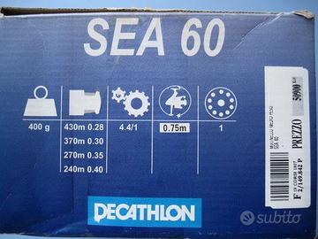 Mulinello Decathlon praticamente nuovo , in materiali compositi , Mod. SEA60 con bobina di filo da 0,35 ( circa 200 mt ) le cui caratteristice sono riassunte nella foto allegata