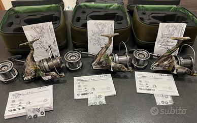 Tutti e tre i mulinelli sono completi dei loro box originali in cordura marchiati Shimano tribal,3 bobine originali (mai usate),+libretti di istruzioni,+ sacchettini con 4 dischetti di rinforzo per le bobine presenti in ogni bustina (mai aperte).