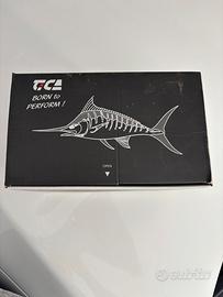 Mulinello da traina OXEAN OX50 TS – già imbobinato con filo Vendo mulinello da traina OXEAN OX50 TS, ideale per pesca in mare a grandi predatori (tonni, ricciole, siluri, ecc.). Il mulinello è robusto, affidabile e già pronto all’uso perché fornito con filo già imbobinato. 🔧 Caratteristiche principali: •Rapporto di recupero a 2 velocità (3.2:1 / 1.4:1) per massima potenza e controllo •6 cuscinetti schermati (6RRB) per scorrevolezza ottimale •Frizione potente fino a 18 kg (40 lb) •Sistema anti-ritorno multiplo •Ingranaggi in acciaio inox ultra resistenti •Bobina anodizzata resistente alla corrosione •Segnalatore acustico di uscita filo (clicker) •Manovella ergonomica soft-touch 🎣 Capacità filo: •Ottima capienza sia per nylon che trecciato (perfetto per traina pesante) ⚖️ Peso: 1550 g 🎣 Filo trecciato già imbobinato incluso Il mulinello viene venduto già completo di filo trecciato DingBear Strong Power, ideale per la pesca a traina pesante. 🔹 Caratteristiche del filo: •Tipo: trecciato (braided line) ad alta resistenza •Carico di rottura: 85 lb (circa 38 kg) •Diametro: 0,45 mm •Lunghezza: fino a 1000 metri •Colore: nero •Elevata resistenza all’abrasione •Zero elasticità → massima sensibilità e ferrata immediata •Ottimo per pesca a grossi predatori (tonni, siluri, ricciole, ecc.)