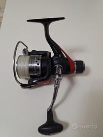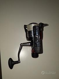 mulinello marca generica, in graphite, taglia 4000, frizione micrometrica posteriore, manetta metallica ambidestra, 3+1 cuscinetti a sfere, rapporto di recupero 5: 1, bobina metallica, antiritorno multipunto, rullino guidafilo twist buster e archetto air bail. Caricato con ottimo nylon tedesco platil marine 0,30. Peso 325 g. Meccanica perfetta superfluida. Normali segni di usura.