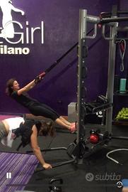 Multystation per allenamento funzinale singolo o di gruppo. Comprende varie postazioni per allenamento funzionale dove si va a lavorare sinergicemte con tutto il corpo. Esercizi uoper e low body a tempo o a ripetizioni. Sono inclusi un rach, pedana regolabile varie altezze per jump squat o lavori monopodalici o altro, parallele regolabili per dips o altri esercizi di spinta/tirata, sbarre per trazionare o per eseguire monkey walk o altro, bilanciere olimpionico con ganci e coppia di dischi da 10 kg marca toorx , coppia di kettelbel k well da 6/8/10 kg, kettlebel in ghisa singola da 12/18/24 kg, sacco da box k well con guantoni annessi, wall ball da 8 kg, palle mediche da 4/6/8 kg, 5 tappetini per addominali/stratching i esercizi a corpo libero, buttle rope.