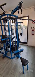 Vendo multistazione completa, ideale per allenamento total body in casa o in piccola palestra/studio personal. Struttura solida in acciaio, molto robusta e stabile. Dotata di pacco pesi con selettori e numerose postazioni per eseguire diversi esercizi. La multistazione permette di lavorare medante: Lat machine Chest press Pec deck Rematore Shoulder press Push down tricipiti (piu carrucole) Push down (mono carrucola, modificata per l'esigenza di avere un push down oiu pesante) Curl bicipiti con cavo Addominali e sbarra per trazione Il pacco pesi varia dai 50 ai 30 kg a seconda della stazione. Carrucole e cavi in buone condizioni Ideale per uso domestico o semi-professionale. Dispone di buone condizioni generali, perfettamente funzionante con normali segni di utilizzo ma nessun problema strutturale. Ingombro medio (circa 2x2 m) Solo ritiro a mano (Porto torres). Il prezzo è leggermente trattabile.