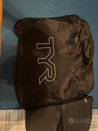 Vendo muta da triathlon o nuoto in acque libere, utilizzata 3 volte in allenamento e dirante ironman. Condizioni perfette, mita come nuova. Regalo anche sacca protettiva (della tyr ma perfettamente adatta) e kit riparazione muta.