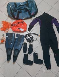 VENDO MUTA DA DONNA 3 MM COME NUOVA, COMPLETA DI PINNE , MASCHERA E ACCESSORI