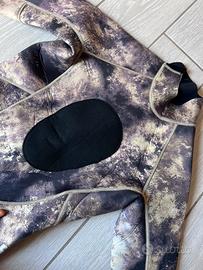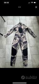 Vendo muta 3mm (165/180cm) foderata sia internamente che esternamente, ottima per climi estivi/primaverili. essendo foderata ha una vestibilota molto buona e una estrema tacilita nel metterla. non serve acqua e sapone. ha il supporto sternale per facilitare larmamemto del fucile e dei punti su ginocchia e gomiti di neopreme piu resistente per appogiarsi su fondali marini. ha una comoda cerniera posteriormente per una facile vestizione. la muta è adatta per uomini e donne in un altezza compresa tra 165 e 180cm. ha una livrea camo per mimetizzarsi nella maggior parte dei fondali adatti alla pesca in apnea.