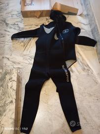 muta 5 mm Scubapro, tessuto bifoderato,giacca con cerniera, pantalone salopette terza misura, indossata x prova