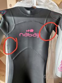 Vendo muta per acque libere Nabaiji usata con due difetti vedi foto. Adatta per iniziare l'attività di nuoto in acque libere, lago e mare.