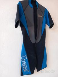 Muta corta da uomo in neoprene marca Cressi taglia S- 3 mm. adatta per tutti gli sport acquatici in ottime condizioni, come nuova, usata pochissimo.