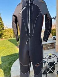 Caratteristiche tecniche: muta monopezzo in neoprene 5mm bifoderato - neoprene ultraspan su braccia e polpacci, gambe preformate, cerniera YKK posteriore con sottocerniera e sistema water stop, rinforzo anti abrasione sulle ginocchia, polsi e caviglie con sistema water stop/ guarnizioni a tenuta stagna