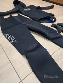 Vendo una muta da apnea Biavati realizzata su misura in Italia, in ottimo neoprene, molto calda e confortevole. È stata usata soltanto tre volte per brevi prove in mare ed è pari al nuovo: nessun difetto o segno di usura. È composta da pantalone 5,5 mm e giacca con cappuccio 6,5 mm. La muta è stata fatta sulle mie misure (sono alto 185 cm e peso 78 kg), quindi può andare bene a corporature simili. La cedo perché non pratico più questo sport. In omaggio includo anche un paio di guanti Seac nuovi, adatti anche alla pesca subacquea. Sono volentieri disponibile a farla provare di persona prima dell’acquisto.
