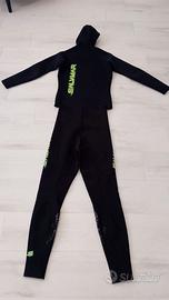 Vendo bellissima muta spaccata bifoderata, giacca taglia "L" 3.5mm, pantaloni taglie a "M" 3.0mm come nuova, usata solo 6 volte, non ci sono graffi e nessun segno di usura, lavata con acqua a dolce e igienizzata a dovere. Vendo per passaggio a muta liscia. Vendo per chi volesse anche solo giacca o solo pantalone. 60,00€ giacca e 40,00€ pantalone.