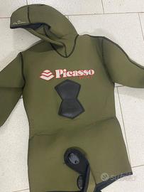 Vendo tuta da pesca subacquea, Marca Picasso in spaccato, millimetri 5, con protezione per caricamento arbete, taglia M. In ottime condizioni.
