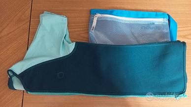 Muta da piscina in tessuto tecnico, ideale per proteggere dal sole e dal freddo. - Maniche corte. - Zip frontale per facilitare l'indossamento. - Tasca laterale con zip in rete. - Colore blu scuro e azzurro.
