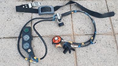 completa di pantaloni, tuta, respiratori, pinne, guanti, contrappeso e calze.
