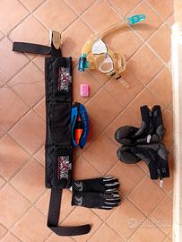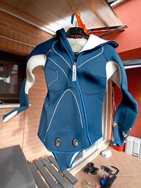 Vendo muta da sub per donna completa. Taglia S/ EUR 40. Il kit comprende: - muta intera TRIBOARD classe termica C per temperature dell'acqua tra 16 e 24 gradi. Vestito umido. Spessore materiale 5,5 mm tronco, 4,5 mm gambe. - giacca subacquea TRIBOARD stessa taglia, stesse caratteristiche. - scarpette TRIBOARD tg. 38/39 - guanti TRIBOARD - maschera O.ME.R. Alien - boccaglio CRESSI - pinne MARES Plana avanti X-3 Small - cintura BEST DIVERS - fascia pesi SEEM NN - 4 tappi in cera nuovi - borsone per trasporto.