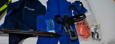 vendo attrezzatura utilizzata pochissimo muta (L) 4mm termo riflettente. pinne professionale, zavorra, arbalete 75cm retino, guanti