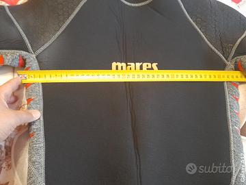 Muta da sub Mares Icelander 5.mm taglia 4 completa di cappuccio separato ho evidenziato piccolo strappo nella caviglia le scritte sono leggermente con crepe a richiesta tutte le foto peso kg 2,500