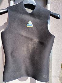 Muta della Cressi Sub tg. M, spessore 5 mm. composta da pantaloni , giacca con cappuccio, corpetto sotto muta, calzari e guanti. Io sono 170 cm. x 70 Kg.
