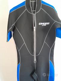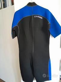 MUTA Shorty CRESSI Lido Man 2,0 mm in neoprene bifoderato con cerniera anteriore - Mezze maniche e pantaloncini con finitura ribattuta -Lido è ottima per lo snorkeling, le immersioni in acque tropicali, il nuoto, la vela e per tutti gli sport acquatici in genere -Leggera e di facile indossamento, lascia grande libertà di movimenti -Misura XXL (52) – Nuova indossata solo una volta -Vedi foto