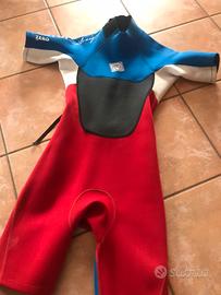 Muta da uomo, a pantaloncino, taglia M, in neoprene, colori nero, blu, rosso e bianco. Firmata RRD.